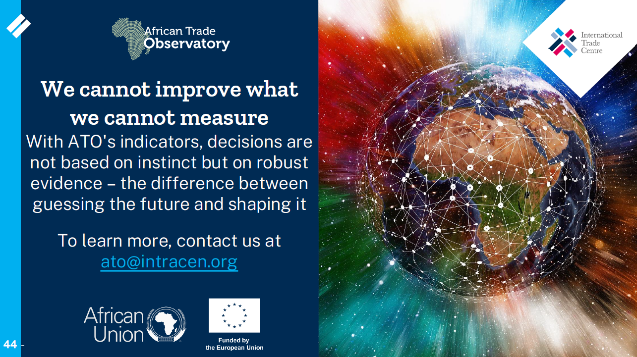 The ATO is an online system that strengthens trade information across Africa by allowing the monitoring of regional integration, competitiveness, market access, broader procedures, and the usage of trade preferences in Africa. ATO also equips Customs Officials to sustain quality trade data and trains policymakers and business people to analyze and use the trade data. ATO, offers a database of trade information, including information and business opportunities and a business directory, as well as a tool for policymakers to negotiate and monitor tariff removal.