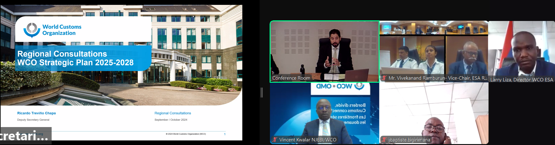 The regional consultation on the strategic Plan 2025 – 2028 took place today and was graced by the Deputy Secretary General, WCO, Mr. Ricardo Trevino Chapa, Mr. Vivekanand Ramburun, the ESA region Vice Chair and Director of Customs, Mauritius, Directors General and Commissioners of the East and Southern Africa Region and Director WCO ESA ROCB, Mr. Larry Liza.
